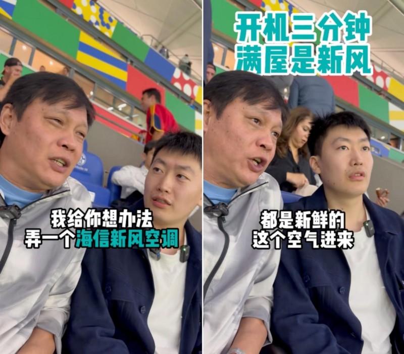 随后的西班牙VS意大利的焦点大战,前国足队长范志毅与知名解说员管泽元组成“海信看球观赛团”,在傲赴沙尔克球场观战时,管泽元聊起了酒店房间的异味,范志毅当场指着海信空调打出的围挡广告,现场给出解决方案,拥有海信空调,立享“开机3分钟,满屋是新风”。