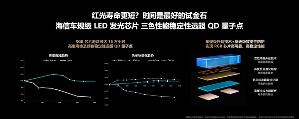 在红色光源寿命难题上,海信旗下专研LED发光芯片的上市公司——乾照光电,于2024年研发的新材料,一举攻克了红色光源寿命和发光效率这一行业难题,使红色光源寿命达到16万小时,可保证15年不褪色,完全满足家庭长期使用需求。
