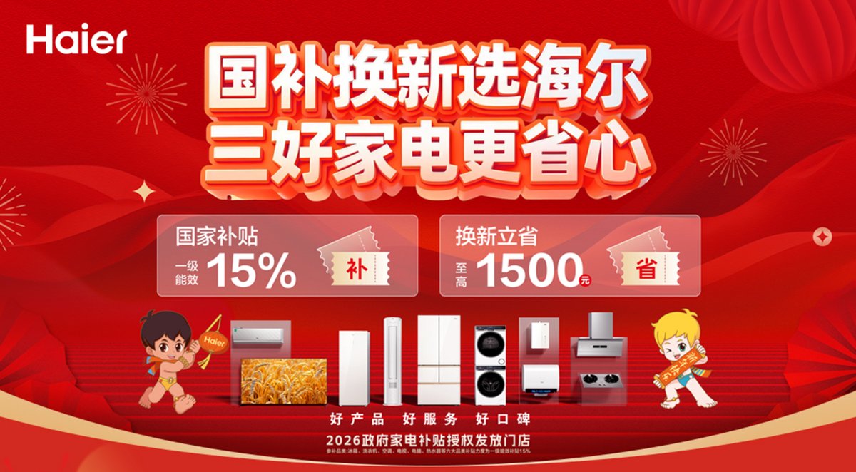 1月1日,随着新一轮国补政策落地,海尔年货节正式启动。活动持续至今,以好产品、好服务、好权益,为广大用户家庭带来生活焕新。春节期间,海尔智家为进一步满足用户,依托数字化服务体系,实现24小时在线响应。用户只需登录海尔商城App,就能一站式享受选购、送装、售后等服务。除夕当天,还有红包大奖与惊喜福利相送,新年把AI送到家,让用户春节焕新无忧。