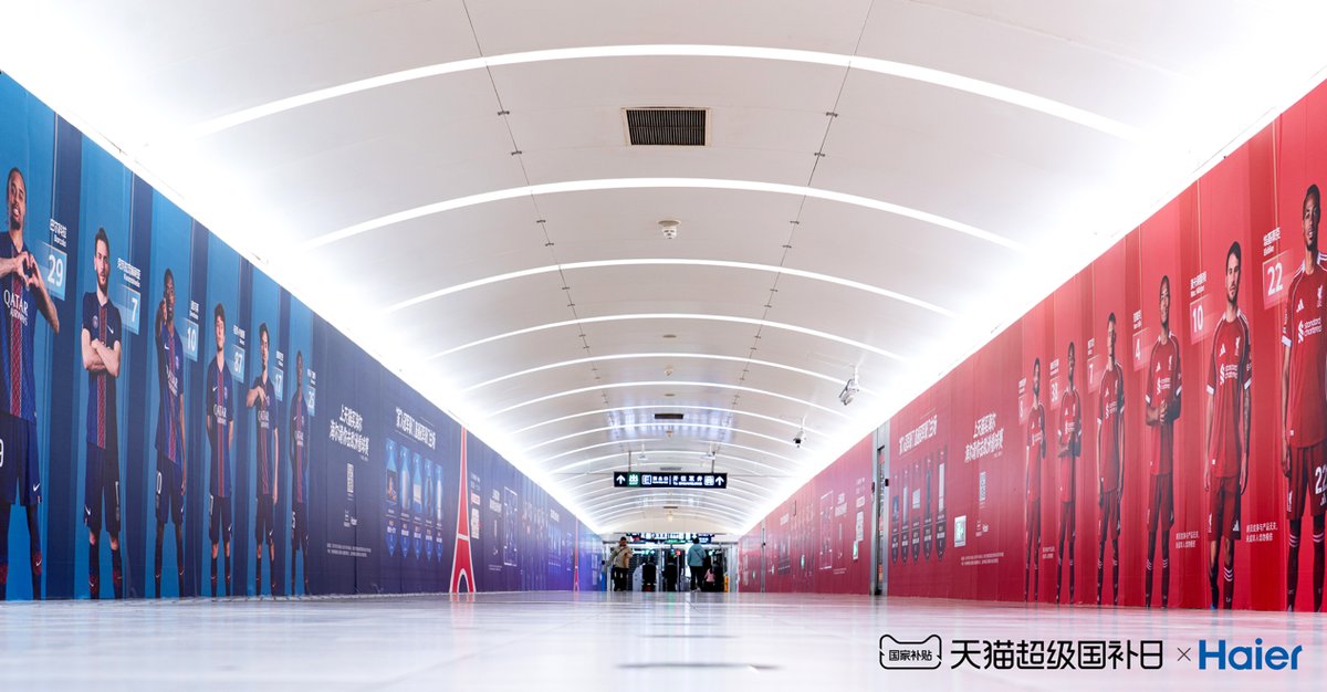 不少通勤的球迷特意放慢脚步,有的仰头举起手机,将海报全景收入镜头;有的熟练打开支付宝,对准海报角落的【碰一下】装置轻轻一碰,屏幕上立刻弹出海尔双11购机攻略、同款单品详情。一时间,地铁站内原本匆忙的通勤氛围,因这道融合了足球激情与家电科技的靓丽“风”线,平添了几分热血与期待。