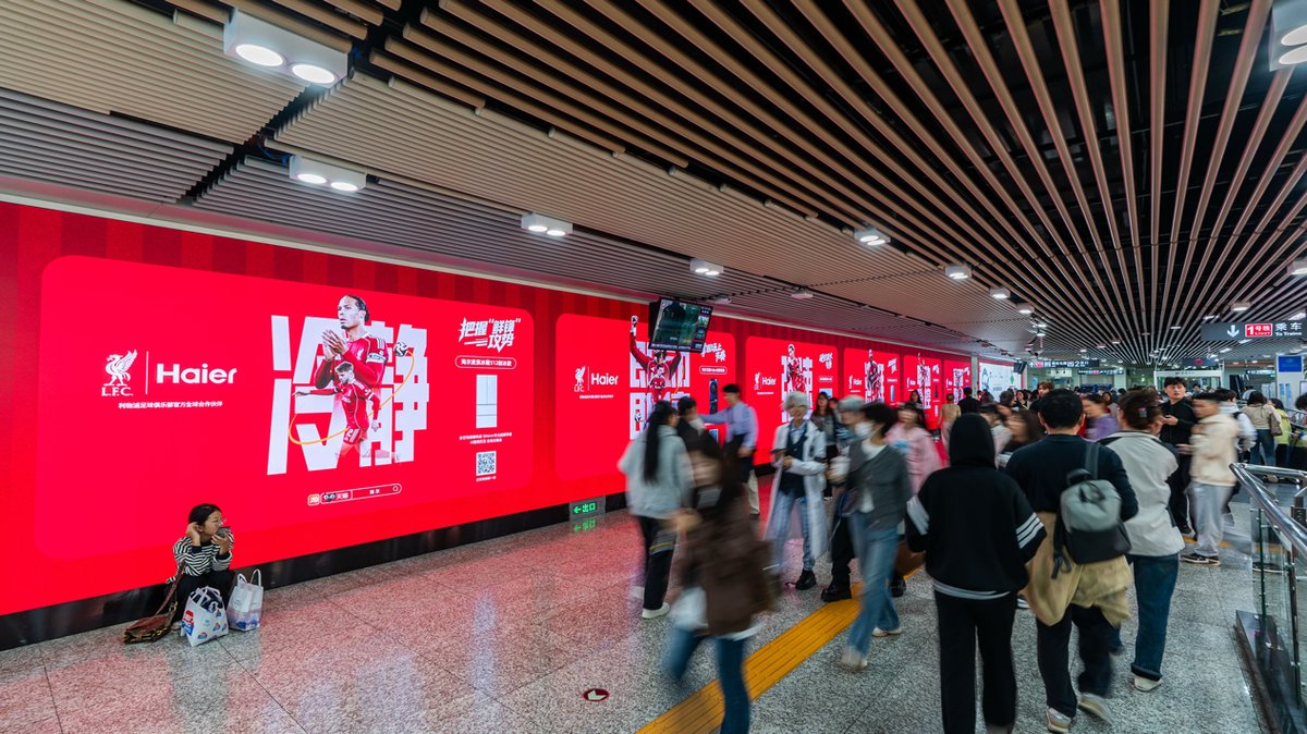 长沙五一广场站,早高峰地铁内人流穿梭,两只欧洲冠军球队的巨幅广告格外吸睛。这是海尔智家携手利物浦、巴黎圣日耳曼打造的 “最‘家’阵容” 创意海报,近日同步登陆长沙黄兴广场站、北京国贸地铁站等核心交通枢纽。人潮涌动中,冠军球队的夺冠气场与海尔冠军家电的科技感设计碰撞出强烈视觉冲击,鲜明的 “冠军球队 + 冠军家电” 组合,瞬间抓住过往路人的目光。