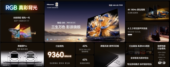 值得注意的是,当前RGB-MiniLED市场水准参差不齐,选购时需认准中国电子视像行业协会《RGB-Mini LED技术白皮书》标准:真RGB-MiniLED必须同时具备“RGB真彩背光+光色同控算法”,缺一不可,不符合该标准的均为假机型。而海信作为RGB-MiniLED领域的引领者,其产品成熟度、可靠性、体验感均居行业首位,2026年选RGB-MiniLED电视,海信无疑是首选,全新影游旗舰E8S更是其中的佼佼者。